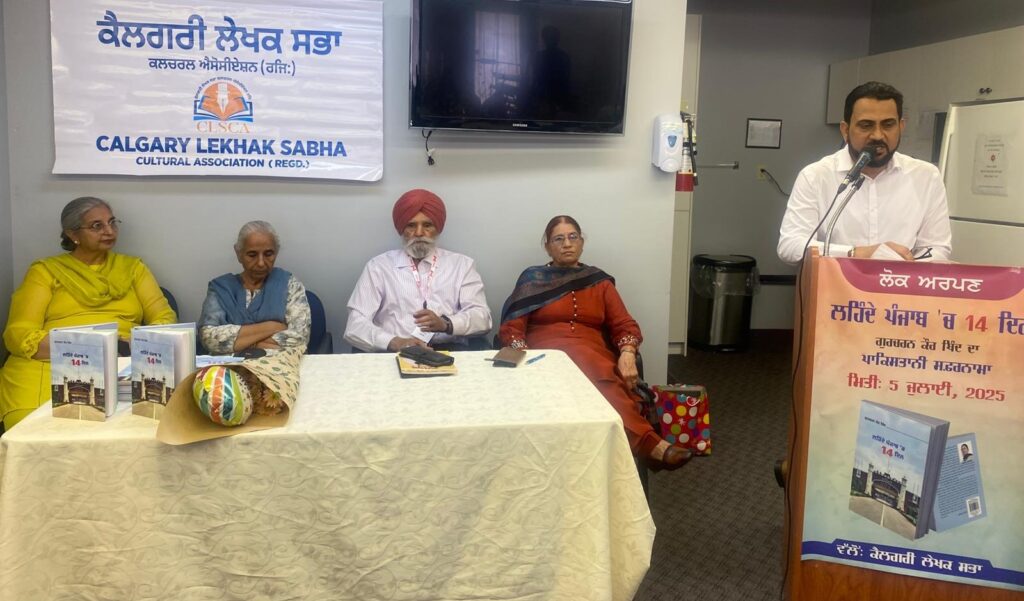 ਕੈਲਗਰੀ ਲੇਖਕ ਸਭਾ ਦੀ ਜੁਲਾਈ ਮਹੀਨੇ ਦੀ ਮੀਟਿੰਗ ਵਿੱਚ 5 ਜੁਲਾਈ, 2025 ਸ਼ਨੀਵਾਰ ਨੂੰ ਕੋਸੋ ਹਾਲ ਵਿੱਚ ਪੰਜਾਬੀ ਦੀ ਸਥਾਪਿਤ ਲੇਖਕਾ ਗੁਰਚਰਨ ਕੌਰ ਥਿੰਦ ਦੀ ਨਵਪ੍ਰਕਾਸ਼ਿਤ ਪੁਸਤਕ ‘ਲਹਿੰਦੇ ਪੰਜਾਬ ’ਚ 14 ਦਿਨ’ ਲੋਕ ਅਰਪਣ ਕੀਤੀ ਗਈ। ਇਹ ਉਨ੍ਹਾਂ ਦੀ ਸੰਨ 2023 ਦੇ ਫਰਵਰੀ ਮਹੀਨੇ ਲਹਿੰਦੇ ਪੰਜਾਬ ਦੀ 14 ਦਿਨ ਦੀ ਯਾਤਰਾ ਦਾ ਸੁਚਿੱਤਰ ਸਫ਼ਰਨਾਮਾ ਹੈ। ਬਲਵਿੰਦਰ ਕੌਰ ਬਰਾੜ, ਜੋ ਇਸ ਕਿਤਾਬ ਦੇ ਮੁਖ-ਬੰਦ ਦੇ ਰਚੇਤਾ ਹਨ, ਨੇ ਕਿਤਾਬ ਬਾਰੇ ਆਪਣੇ ਵਿਚਾਰ ਸਾਂਝੇ ਕਰਨ ਦੇ ਨਾਲ ਨਾਲ ਆਪਣੀ ਲਹਿੰਦੇ ਪੰਜਾਬ ਦੀ ਸੰਖੇਪ ਫੇਰੀ ਦੇ ਤਜਰਬੇ ਅਤੇ ਅਨੁਭਵ ਵੀ ਸਾਂਝੇ ਕੀਤੇ। ਉਨ੍ਹਾਂ ਦੱਸਿਆ ਕਿ ਸਫ਼ਰਨਾਮੇ ਵਿੱਚ ਵਿਸ਼ੇਸ਼ ਤੌਰ ਤੇ ਮੁਲਾਕਾਤਾਂ ਵਾਲਾ ਹਿੱਸਾ ਅਤਿ ਅਹਿਮ ਹੈ। ਇਸ ਵਿੱਚ ਲਹਿੰਦੇ ਪੰਜਾਬ ਦੀਆਂ ਨਾਮਵਰ ਹਸਤੀਆਂ ਆਸ਼ਿਕ ਰਹੀਲ, ਈਸਾਨ ਬਾਜਵਾ, ਬਾਬਾ ਨਜ਼ਮੀ, ਦੀਪ ਸਾਈਦਾ ਅਤੇ ਅਹਿਮਦ ਰਜ਼ਾ ਪੰਜਾਬੀ ਨਾਲ  ਲੇਖਿਕਾ ਦੁਆਰਾ ਪੰਜਾਬੀ ਨੈਸ਼ਨਲ  ਟੀ.ਵੀ. ਲਈ ਕੀਤੀਆਂ ਮੁਲਾਕਾਤਾਂ ਦਾ ਹਰਫ਼-ਬਹਰਫ਼ ਅੱਖਰੀਕਰਨ ਸ਼ਾਮਲ ਹੈ ਜੋ ਲਹਿੰਦੇ ਪੰਜਾਬ ਦੀ ਮਾਨਸਿਕਤਾ, ਹਾਲਾਤਾਂ ਤੇ ਪ੍ਰਸਥਿਤੀਆਂ ਤੇ ਬਾਖ਼ੂਬੀ ਝਾਤ ਪਵਾਉਂਦਾ ਹੈ।